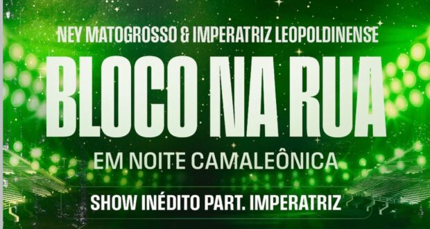 Enredo da Imperatriz Leopoldinense para o Carnaval 2026, o cantor Ney Matogrosso realiza no próximo dia 04/02, a partir das 20h, no Vivo Rio, uma edição especial do show da Turnê “Bloco na Rua”, desta vez com participação da Rainha de Ramos e seus segmentos.